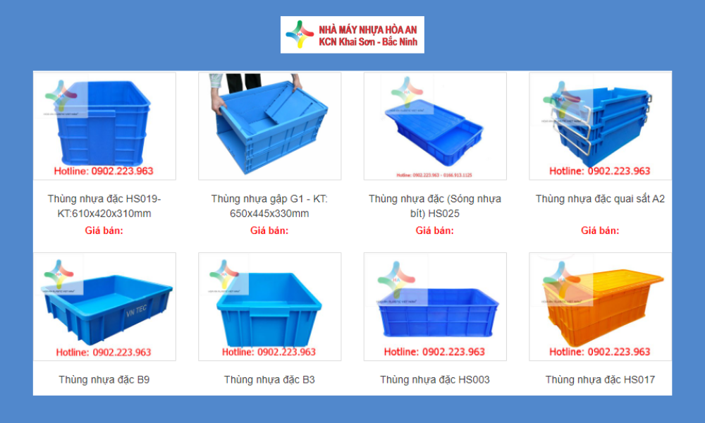 Lời khuyên: Luôn yêu cầu thông tin chi tiết về chất liệu nhựa (HDPE, PP, nhựa nguyên sinh hay tái chế), độ dày thành thùng, và tải trọng tối đa. Nếu có thể, nên test thử thực tế hoặc mua mẫu trước khi đặt số lượng lớn.