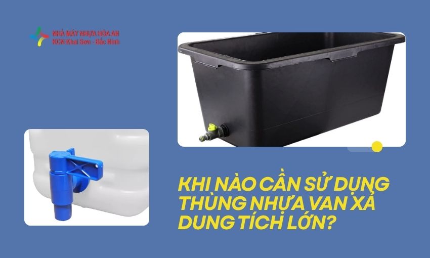 Thùng nhựa van xả được thiết kế để tối ưu quá trình chứa, xả và vệ sinh chất lỏng. Người dùng nên lựa chọn loại thùng này khi cần xử lý khối lượng lớn dung dịch, yêu cầu xả nhanh, kiểm soát dòng chảy và hạn chế rủi ro tràn đổ.