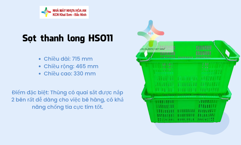 Sản phẩm của Hòa An được làm từ nhựa nguyên sinh hoặc tái sinh chất lượng cao, không độc hại, chịu lực tốt, dùng được trong cả thực phẩm lẫn công nghiệp. Ngoài ra, bạn còn có thể đặt hàng số lượng lớn với giá sỉ hấp dẫn, hỗ trợ vận chuyển toàn quốc.